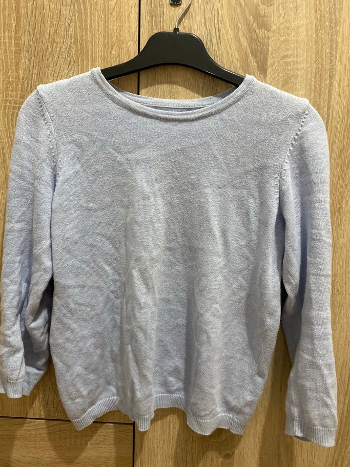Gri renkli, bisiklet yakalı, uzun kollu, yumuşak keten kumaştan örülmüş bol kesim kazak.