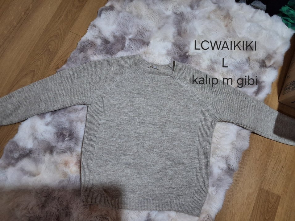 Gri renkte, bisiklet yaka ve uzun kollu kadın triko kazak. Rahat kesimi ve midi boyu ile günlük sokak stiline uygun. kol boyu bitık kısa