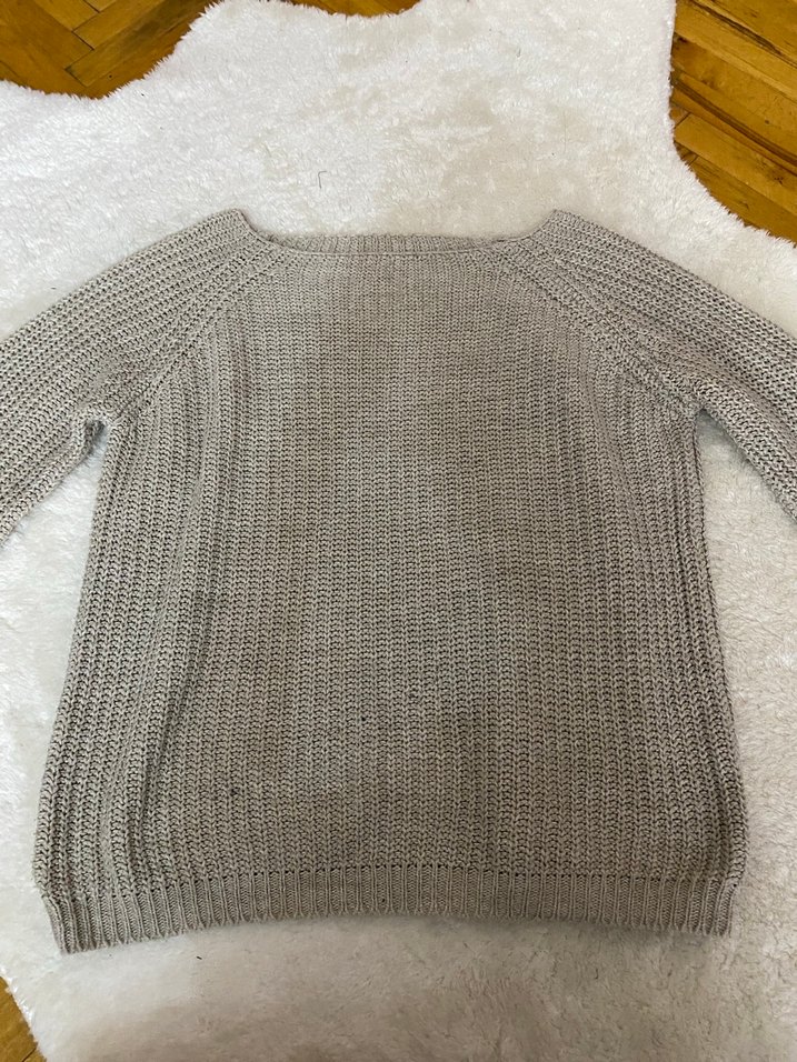 Kadınlar için boğaz kesimli, uzun kollu, yumuşak triko kumaştan yapılmış, gri renkte salaş kesim bir kazak. Günlük kullanım için rahat ve bohem tarzda, normal boyda ve sade tasarım.