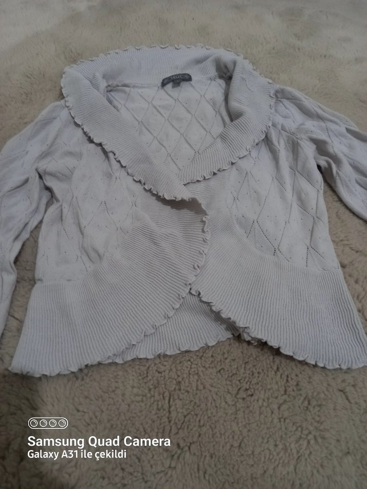 Gri renkli, yumuşak keten kumaştan örülmüş, uzun kollu ve notched yakalı, rahat kesim midi uzunlukta kadın triko hırka. Rahat ve günlük kullanıma uygun.