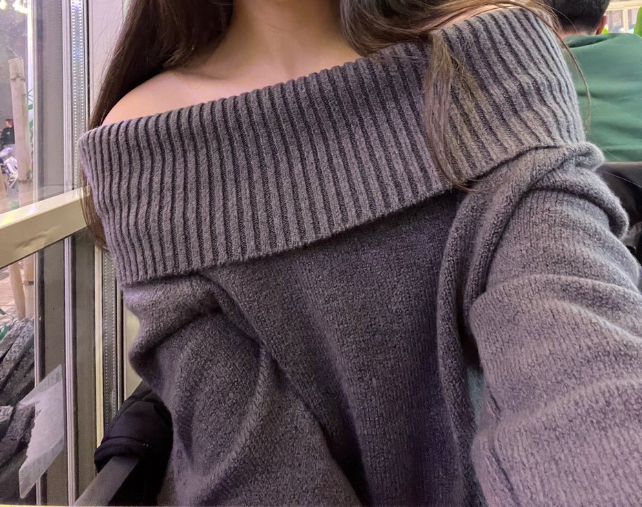 Gri Kadın Triko Kayık Yaka Kazak