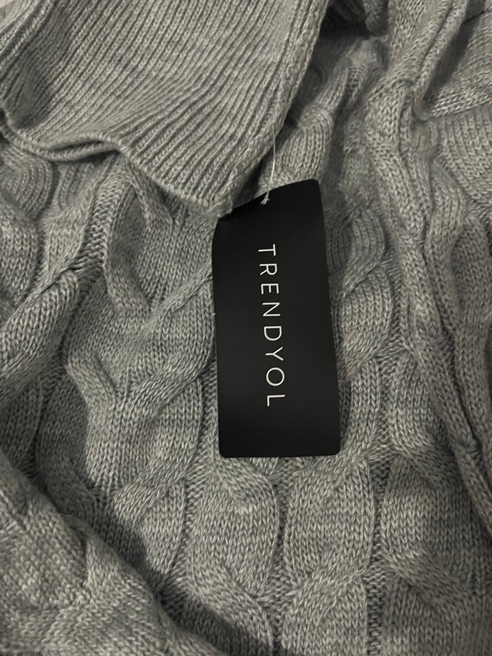 Trendyol etiketli gri kadın triko kazak, boğazlı rahat ve dokulu yapısıyla günlük stili için uygundur.