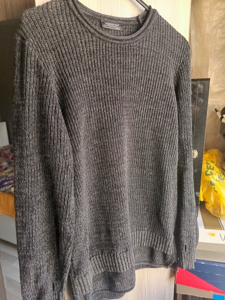 Gri renkli, yuvarlak yaka ve uzun kollu, bol kesim triko kazak. Sade tasarımıyla günlük rahat kullanıma uygundur.