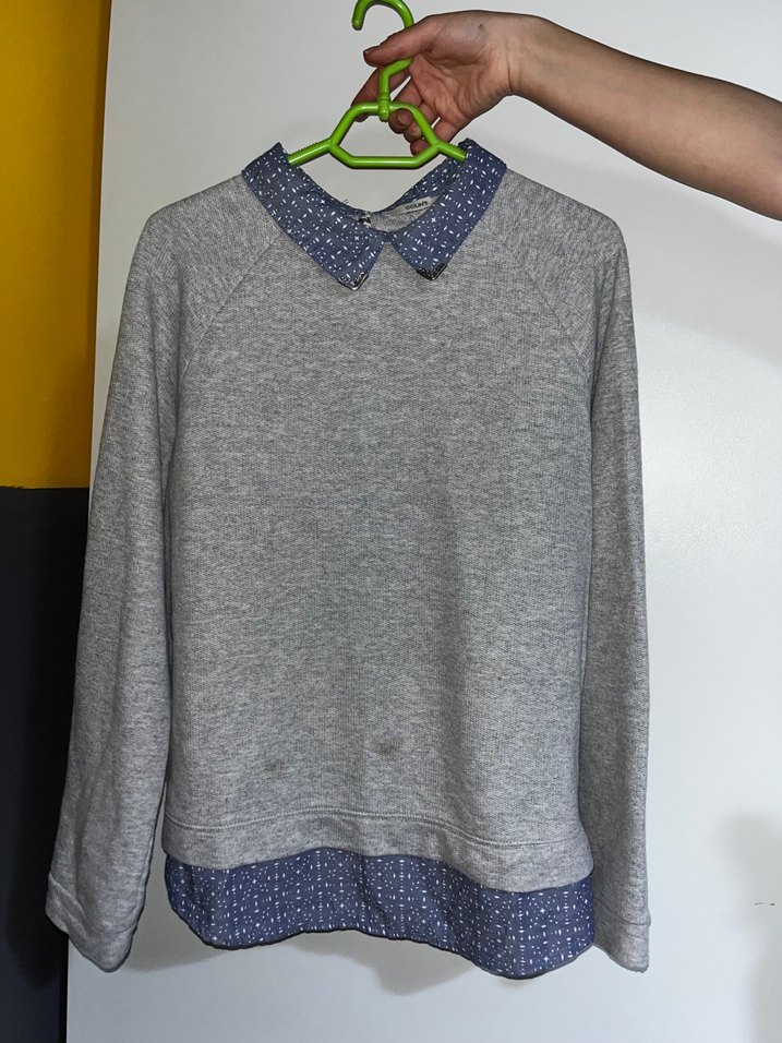 Gri renkli, yakalı ve uzun kollu kadın triko kazak. Pamuk kumaştan örülmüş, rahat kesim ve normal midi boydadır. Günlük kullanıma uygundur.