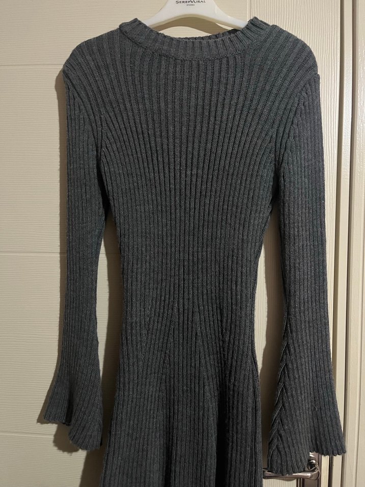 Gri Kadın Triko Midi Elbise