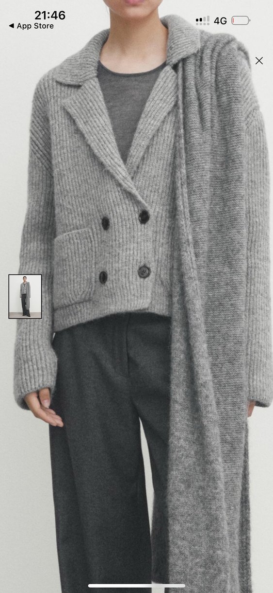 Gri, örme, yün midi uzunlukta, bol kesim, uzun kollu, yakalı kadın hırka. Rahat günlük kullanım için uygundur.