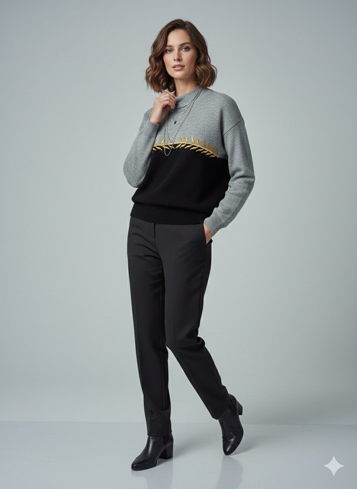 Az kullanılmıştır ve standart bedendir. Gri renkte, regular fit kesime sahip, yuvarlak yaka ve uzun kollu kadın triko. Normal midi boyunda, desen içermeyen rahat ve şık tasarım.