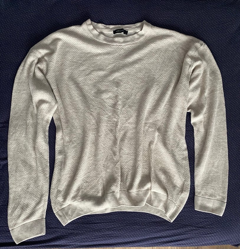 Gri renkli, uzun kollu, bisiklet yaka kadın triko kazak. Yumuşak keten dokulu, bol kesim ve günlük kullanım için uygundur.