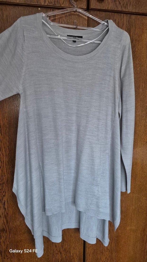 Gri renkte, uzun kollu ve bisiklet yaka olan bu triko kazak, yumuşak örgü kumaştan üretilmiş olup bol kesim ve normal midi boydadır.