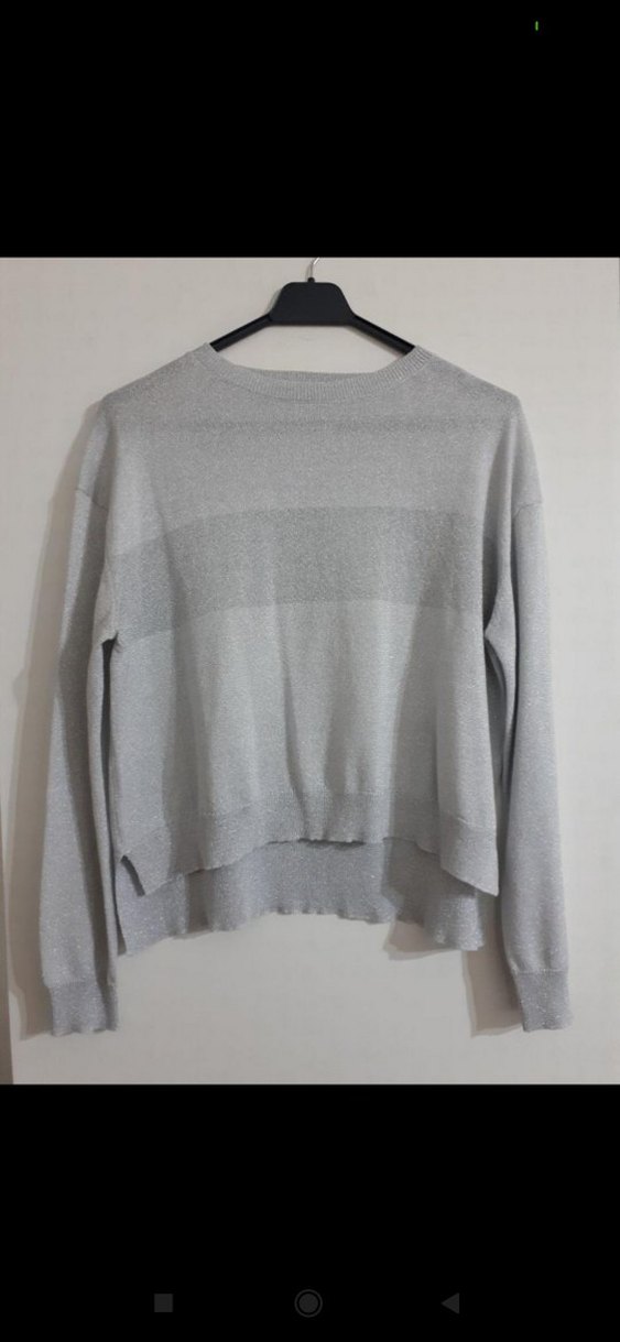 Gri renkte, uzun kollu ve yuvarlak yakalı kadın triko. Sentetik kumaştan örme dokulu, bol kesim ve desen içermez. Günlük kullanıma uygun midi boyda rahat bir model.