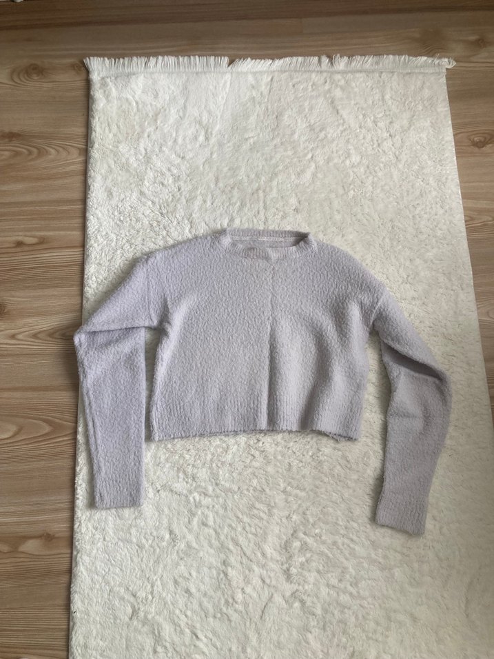 Gri renkli, uzun kollu, yuvarlak yaka kadın triko kazak. Rahat ve yumuşak dokulu, normal boyda ve bol kesimdir.