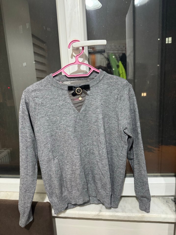 Bu gri, dar kesim kazak uzun kollu ve bisiklet yaka olup, yumuşak triko kumaştan üretilmiştir. Desensiz sade tasarımı günlük sokak stiline uygundur.