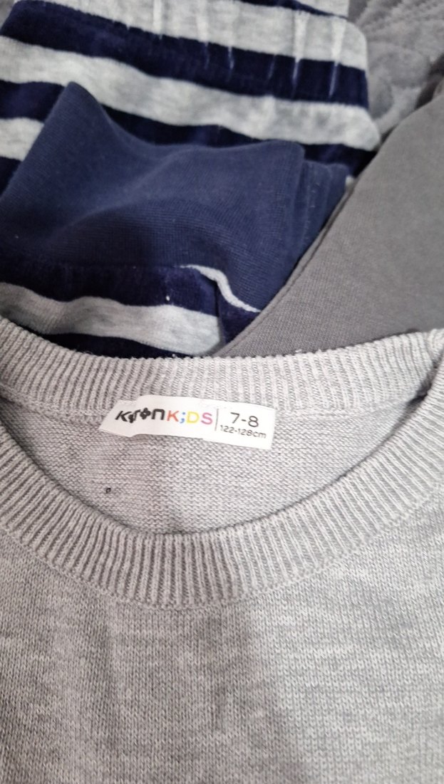 Gri renkte, yuvarlak yaka ve uzun kollu kadın triko kazak. Örme kumaştan, baskılı desenli ve normal boyda, günlük kullanıma uygun rahat bir modeldir.