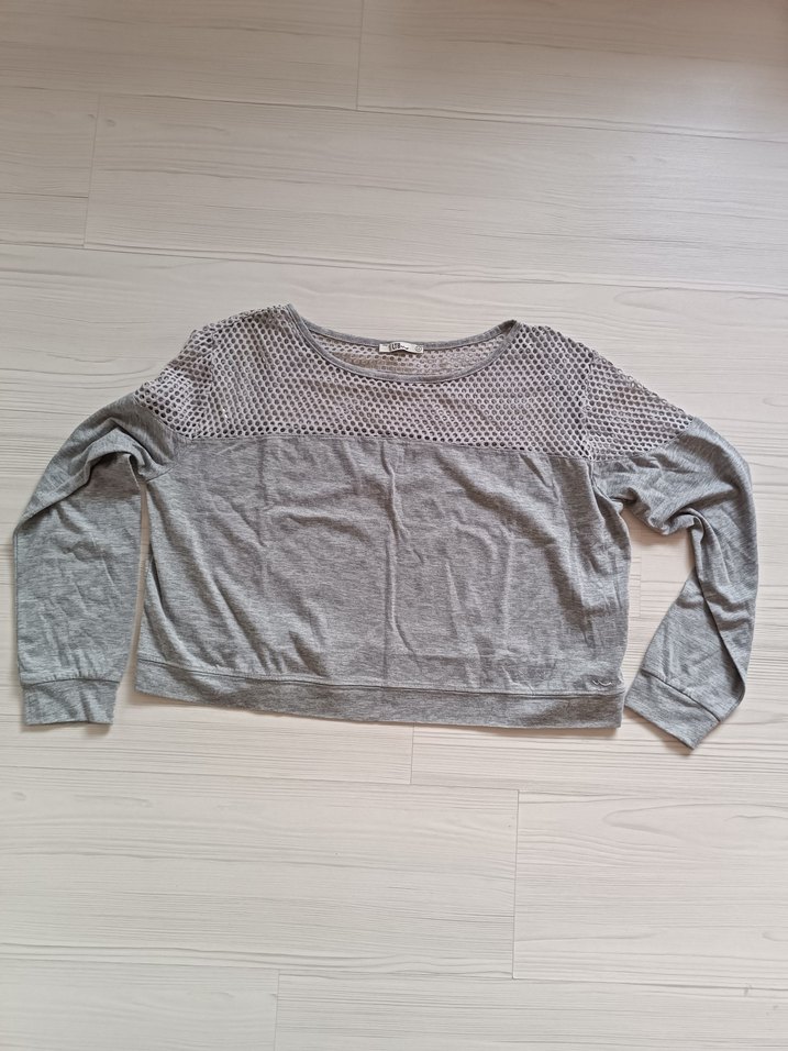 Gri renkli, pamuklu triko kumaştan yapılmış, uzun kollu ve yuvarlak yakalı, salaş kesim kadın sweatshirt. Günlük ve sokak stiline uygundur.