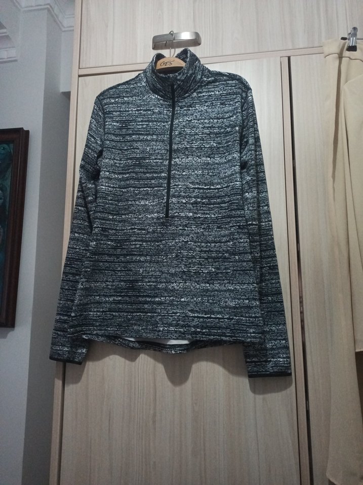 Gri renkte, uzun kollu ve yüksek yakalı, triko dokulu sentetik kumaştan yapılmış, vücuda oturan kadin sweatshirtü. Günlük ve sokak tarzı için uygundur. spor için kullanilir