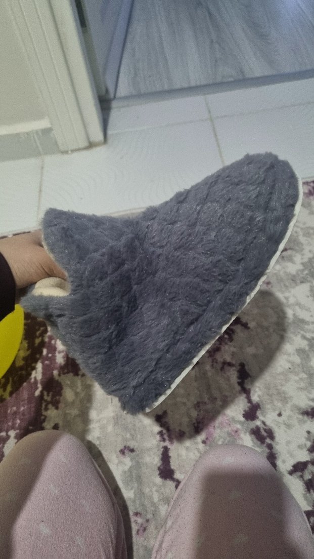 Gri Kadın Tüylü Dolgu Topuk Ev botu