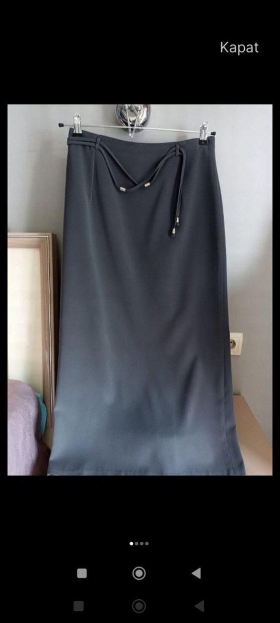 Gri Kadın Uzun Drapeli Etek - Görsel 2