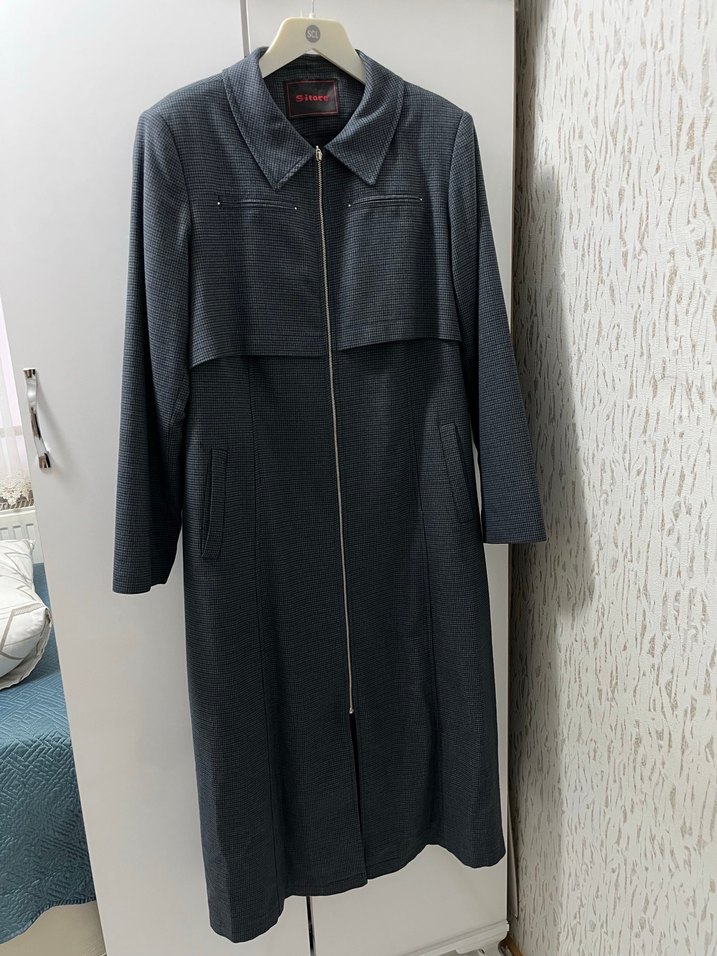 Gri Kadın Uzun Fermuarlı Ofis Kabanı