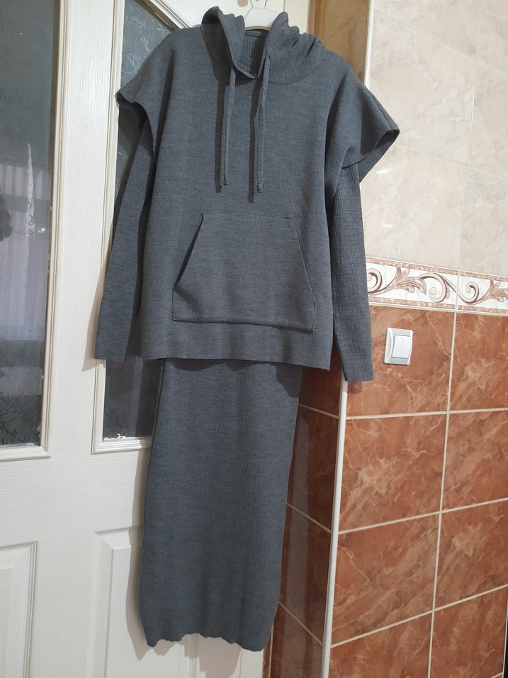 Gri renkte, uzun kollu triko fit kadın elbise suveter ikili takım sadece 1 kez 1 kaç saat kullanıldı fiyatta yardımcı olurum standart beden