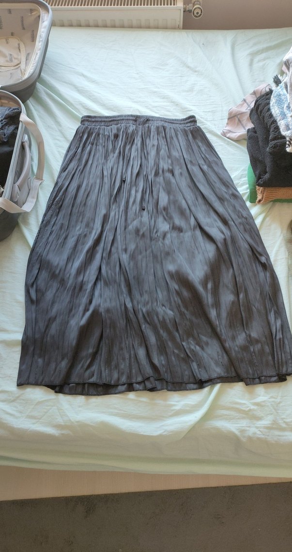 siyah renkli bu uzun etek, piliseli detaylara ve bol kesime sahip, hafif keten kumaştan üretilmiştir. Bohem tarzıyla günlük kullanıma uygundur.