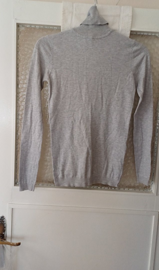 Gri renkte, uzun kollu ve boğazlı, ince ve rahat keten kumaştan yapılmış kadın trikosudur. Günlük kullanıma uygundur.