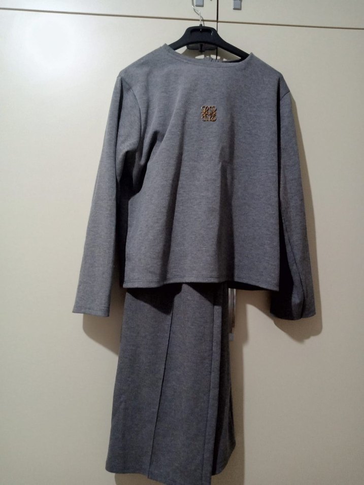 Gri renkte, uzun kollu ve bisiklet yaka, bol kesim kadın eşofman takımı. Yumuşak ve sıcak kumaştan, günlük kullanım için uygun. Küçük bir amblem detayına sahip. ♀️