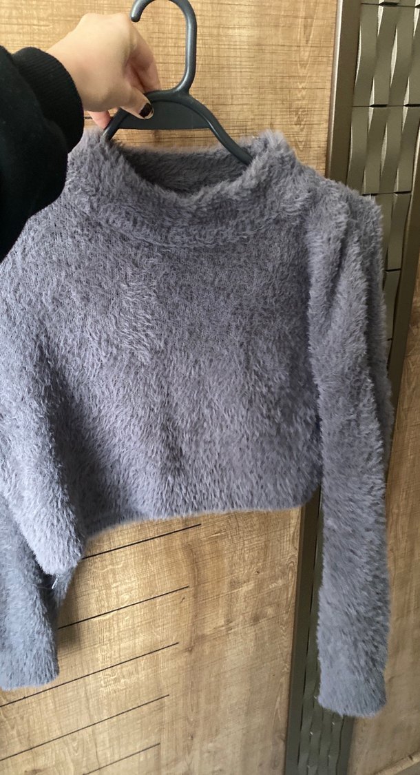 Gri Kadın Uzun Kollu crop Yumuşak Kazak