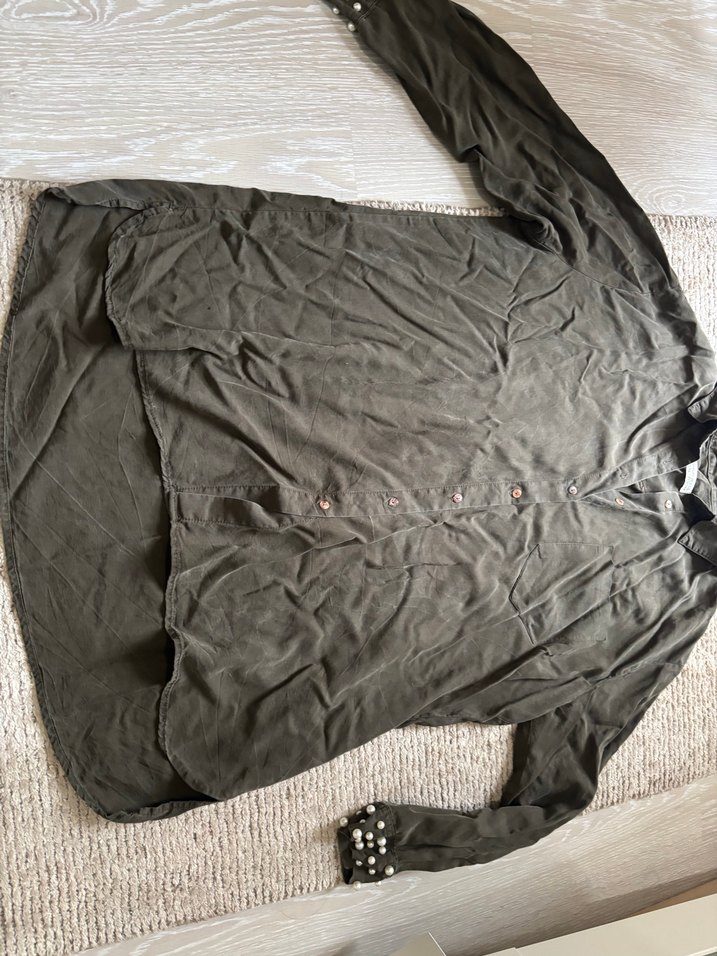 Düğmeli, uzun kollu, gri keten gömlek. Salaş kesimi ve yakalı modeliyle gündelik ve goth tarzına uygundur. İade almıyorum az kullanıldı üzeri damarlı gibi çizgi vs var dilvinin