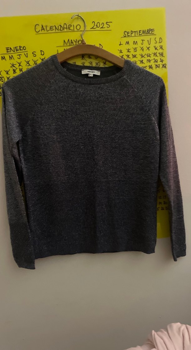 Gri renkli, , yuvarlak yaka ve bol kesim uzun kollu kazak. Günlük rahat ve trend bir stil sunar.
