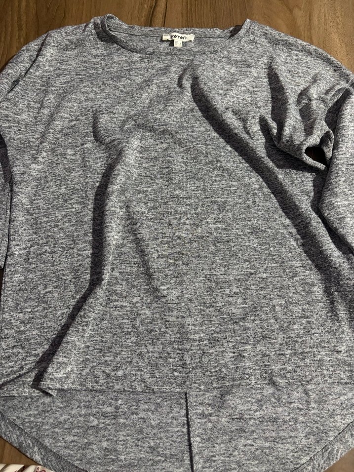 Gri renkli, yuvarlak yaka ve uzun kollu kadın kazak. Rahat kesimli, normal boyda, örgü dokulu ve desen içermeyen günlük kullanıma uygun bir modeldir.