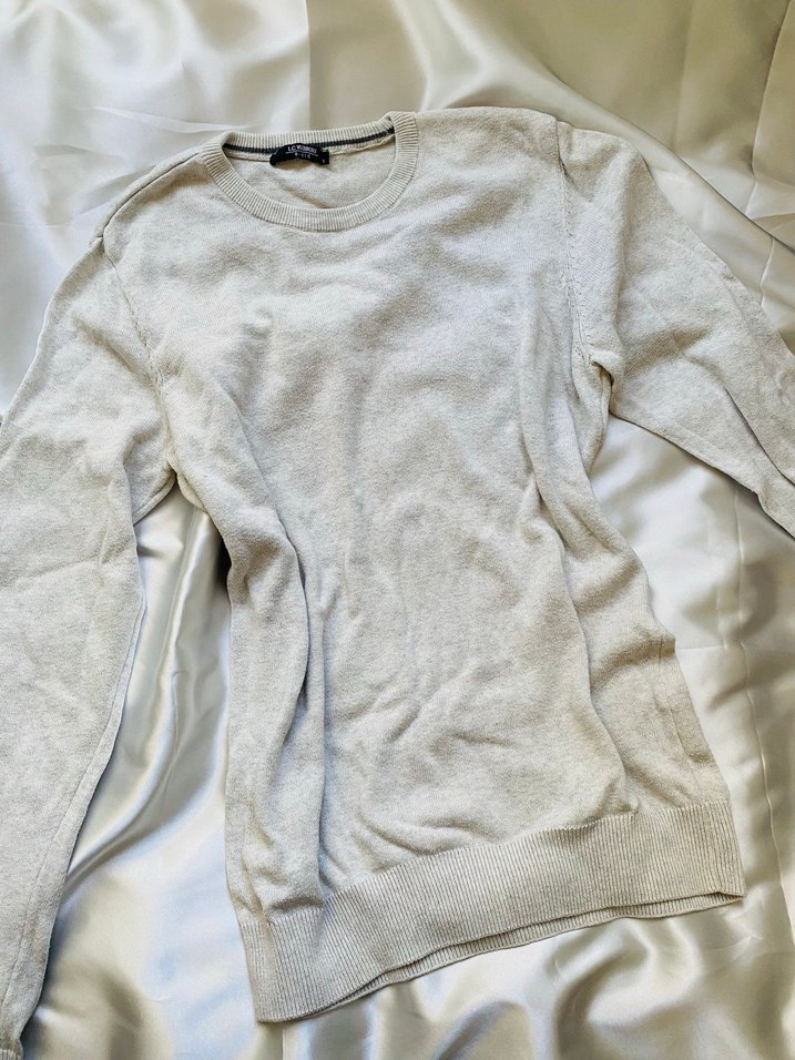 Gri renkte, keten kumaştan üretilmiş, uzun kollu ve yuvarlak yaka kadın kazak. Salaş kesimi ve sade tasarımı günlük kullanıma uygundur.