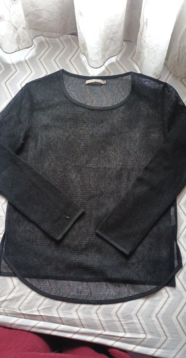 Gri renkli, yuvarlak yakalı, uzun kollu keten triko. Bol kesim ve normal midi boyda, günlük kullanıma uygun.