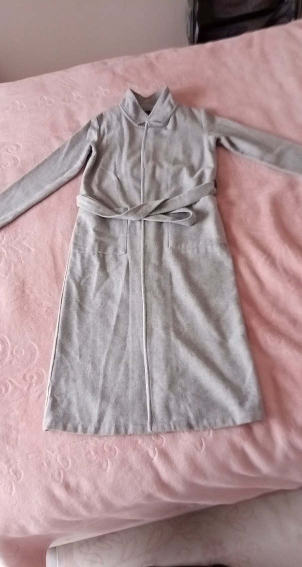 Kadınlar için uzun kollu, bol kesim ve kemerli gri renkte rahat astarsız kaban Uzun boyu ve sade tasarımıyla konfor sağlar. ️
