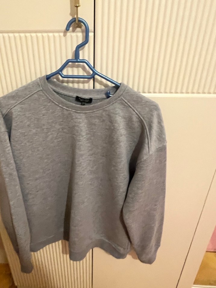 Gri renkli, yuvarlak yaka ve uzun kollu sweatshirt, rahat ve bol kesimdir. Ürün kullanılmamıştır. M beden salasdır.