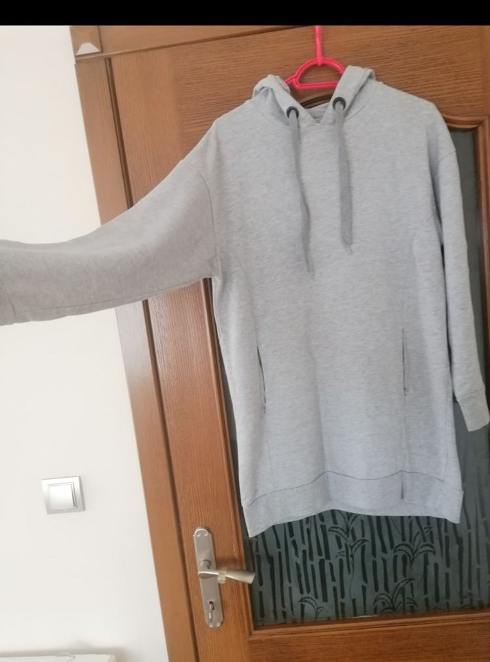 Yumuşak keten kumaştan yapılmış, uzun kollu ve bisiklet yaka gri bol kesim sweatshirt. Rahat ve günlük kullanım için uygundur. Kadın sweatshirt boy 86cm. Markası busem etiketi kesildi