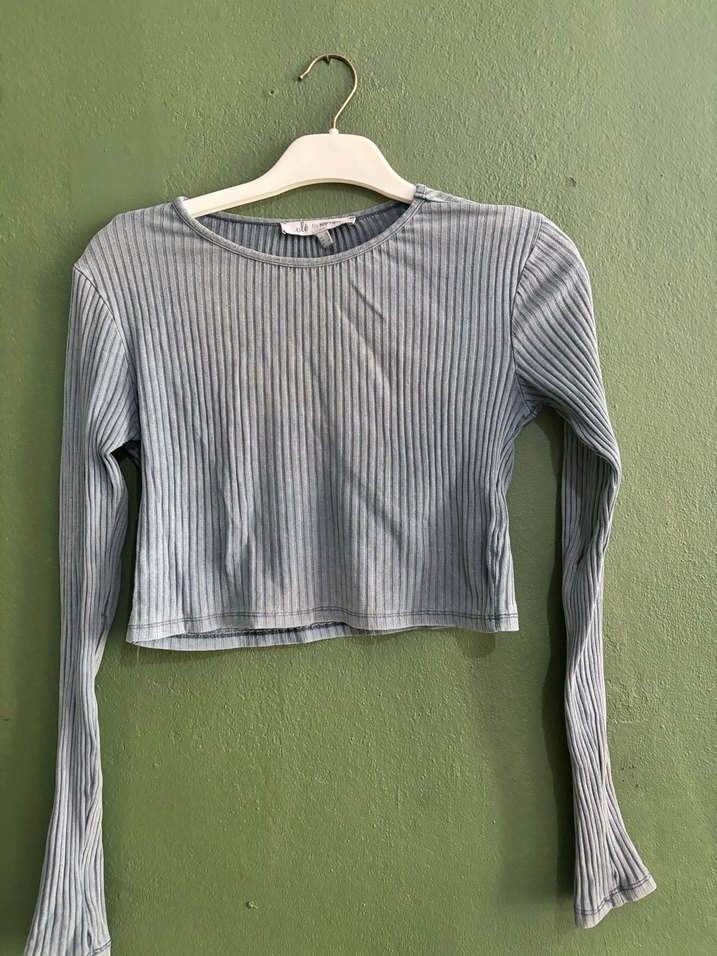 Gri renkli, uzun kollu ve yuvarlak yakalı kadın trikosudur. İnce keten dokusu ve pileli yapısıyla günlük rahat sokak stiline uygundur.
