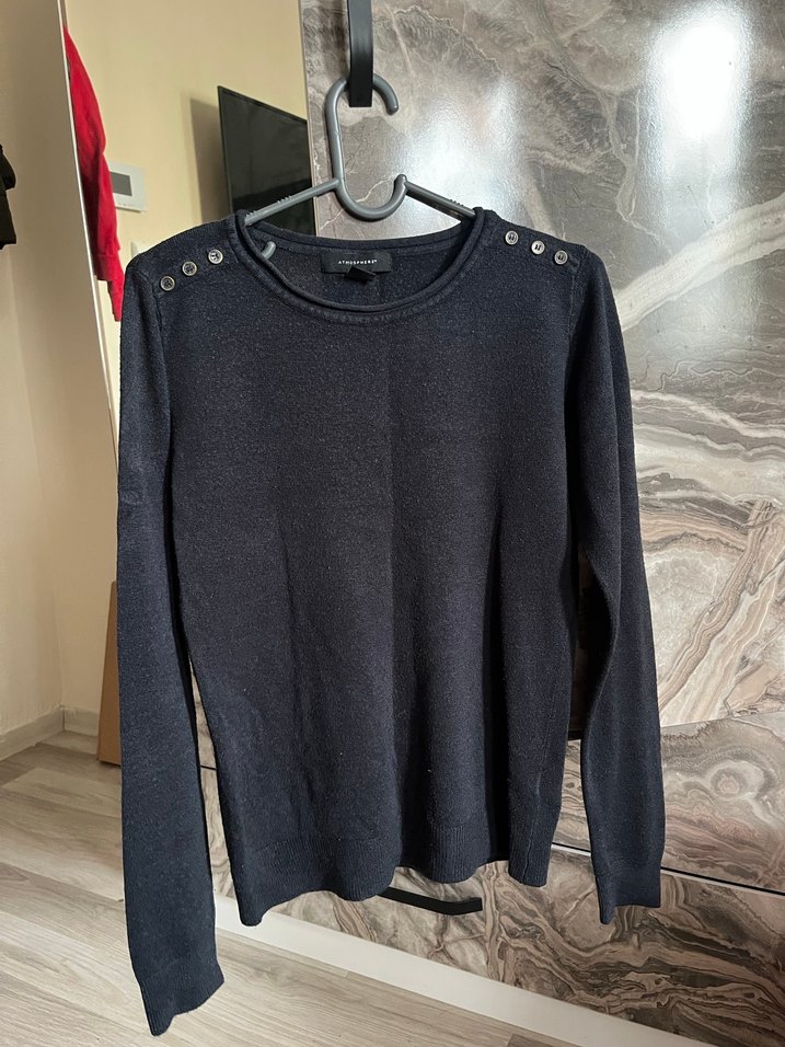 Düğmeli omuz detaylı, uzun kollu gri yün triko. Rahat kesimi ve normal boyu ile günlük sokak stiline uygun.