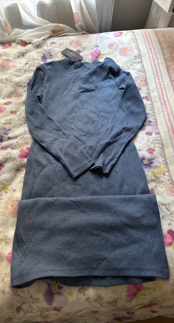 Gri renkli, uzun kollu ve kruvaze yakalı, yumuşak ve sıcak kumaştan yapılmış, vücuda oturan uzun elbise. Rahat ve şık bir görünüm sunar.