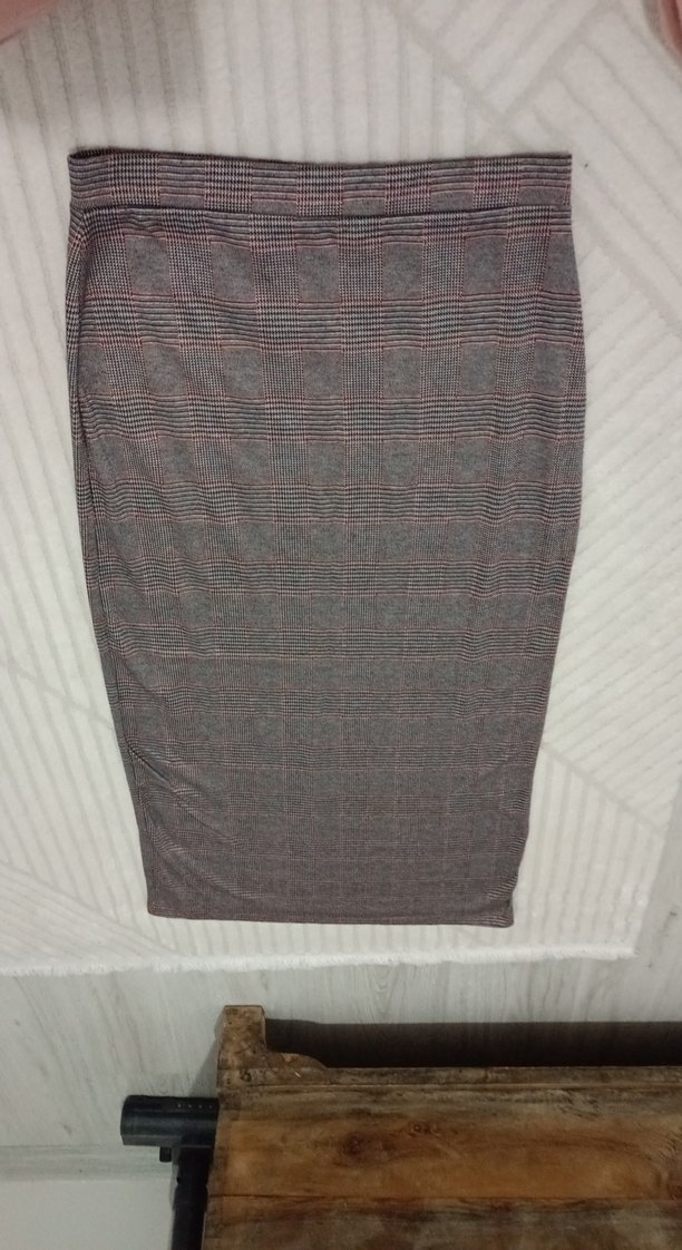 Gri renkte, pilili ve regular fit kalem etek. Sentetik kumaştan üretilmiş, rahat ve uzun boy. Ofis ve günlük kullanıma uygun sokak stili.