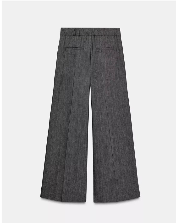 Gri renkte, ve düz desenli kadın yün karışımlı pantolon, rahat kalıp ve uzun paça ile günlük kullanıma uygundur. Etiket fiyatı 4500 tl civarında