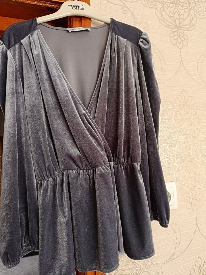Gri Kadın V Yaka Uzun Kollu Bluz