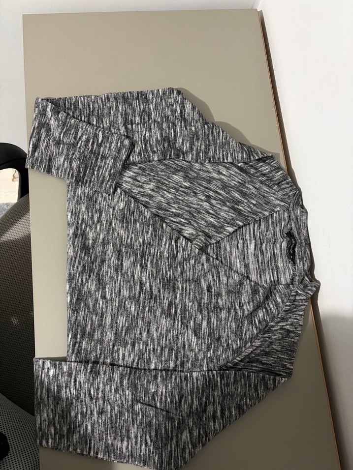 Gri renkli, yüksek yakalı ve uzun kollu bu fitted sweatshirt, yumuşak sentetik kumaştan örme dokusuyla casual sokak stiline uygundur. Ürün Crop şeklindedir kısadır önü kuruvaze geliyor dekoltesi var. Kumaşı yumuşak çok güzel hiç kullanılmadı
