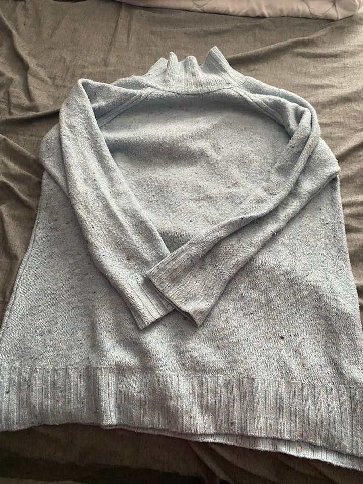 Gri renkte, yün malzemeden örülmüş, balıkçı yaka ve uzun kollu, rahat kesime sahip midi uzunlukta kadın kazak. Günlük kullanım için uygundur.
