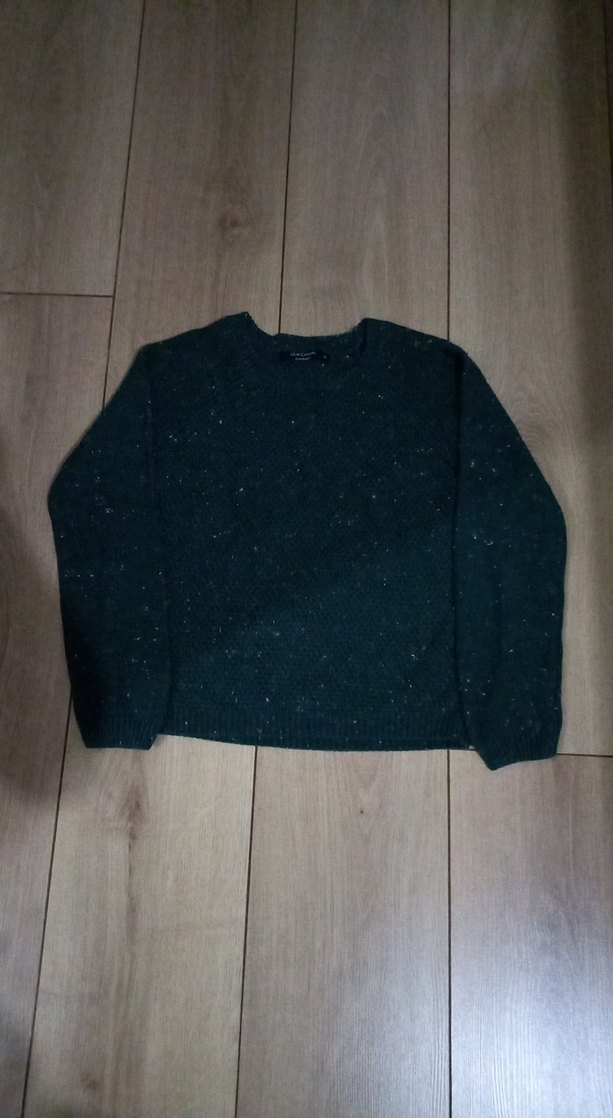 Koyu gri renkli, yün örgü, uzun kollu ve yuvarlak yaka kazak. Rahat kesimi ve normal boyu ile günlük kullanıma uygundur.