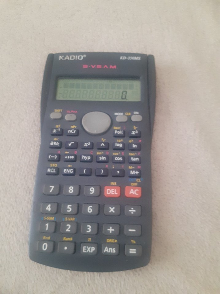 Gri Kadio bilimsel hesap makinesi, net ekran ve Ans, DEL, EXP, AC gibi çoklu fonksiyon tuşlarına sahiptir.