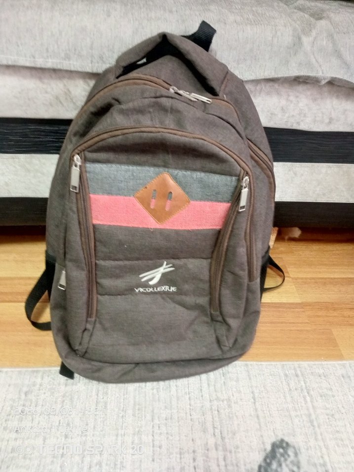 Fermuarlı bölmeleri ve kahverengi-gri tonlarda baskılı deseniyle erkek sırt çantası. Sokak stili ve günlük modaya uygundur.