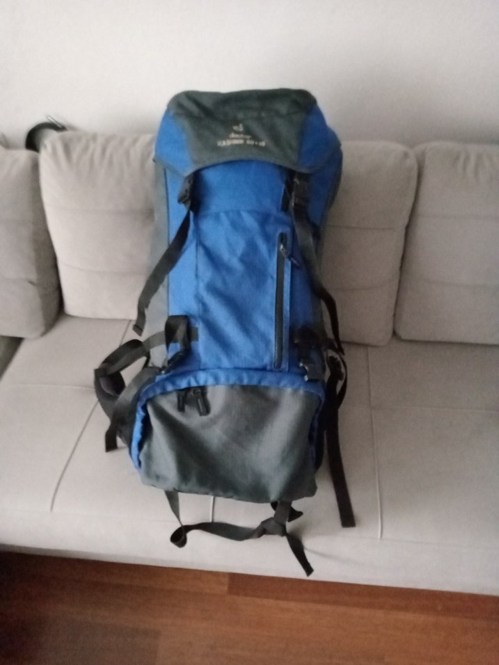 Erkekler için mavi gövde ve gri detaylı, tokalı kapamalı, desen içermeyen basic sokak modası sırt çantası. Birden fazla kayışla güvenli taşıma sağlar.