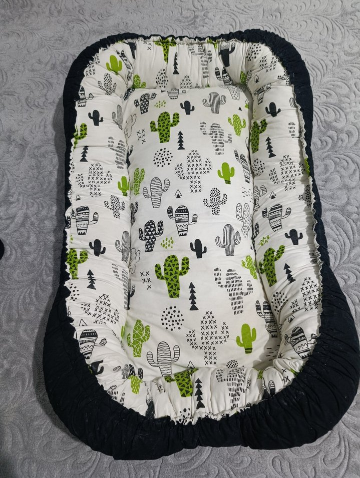 Gri Kaktüs Desenli Bebek Yatağı baby nest çantalı