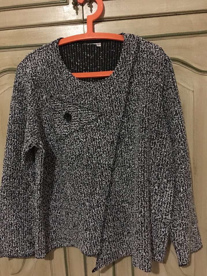 Gri renkli, örgü dokulu kadın bluz uzun kollu ve notched lapel yakalı. Rahat kesimi ve midi boyuyla konforlu bir stil sunar. Boy 63 cm iki koltuk 57 cm iade yoktur