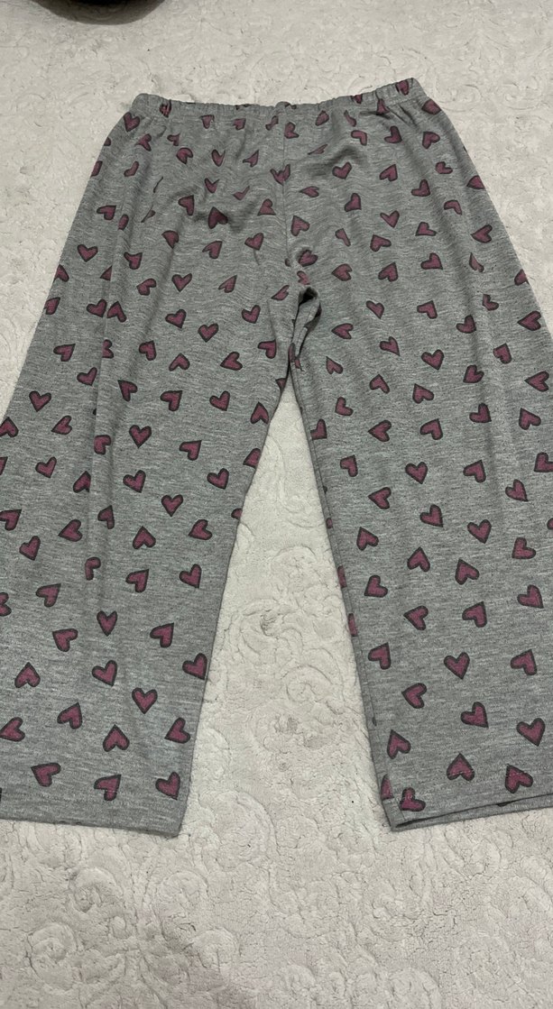 Gri renkli, kalp desenli rahat kesim kadın pijama altı, yumuşak ve konforlu kumaştan üretilmiştir. Rahat kullanım sağlar.